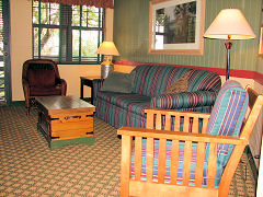 These Disney Hilton Head Island rental units contain almost 900 square feet of living area but can sometimes feel a bit cramped. There is a full kitchen, washer/dryer, TV and a DVD player. The living area is furnished with a queen sleeper sofa and the Master suite has a king size bed and whirlpool bath.